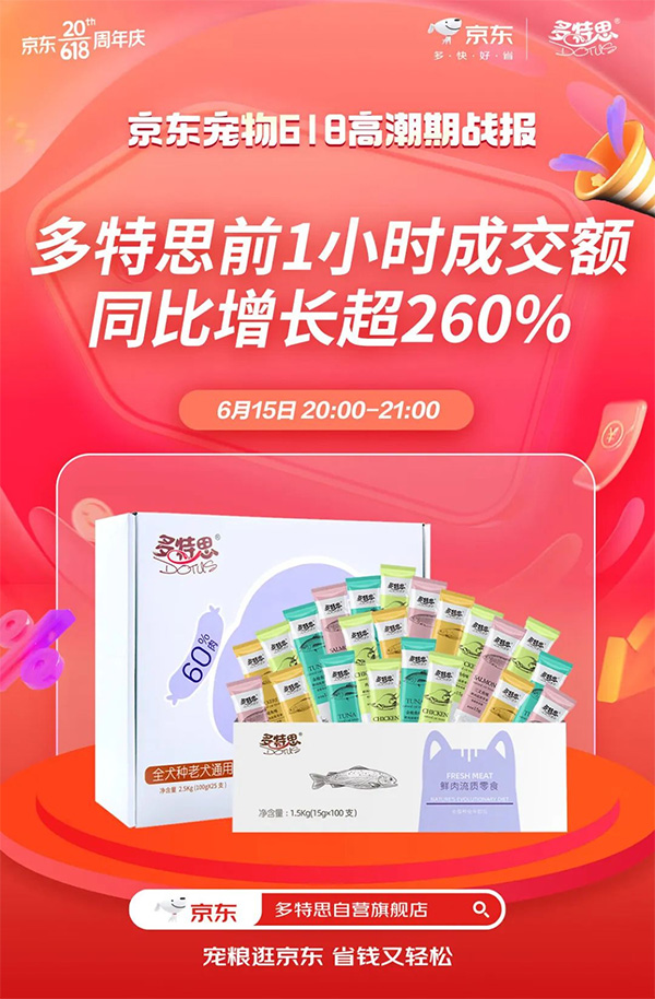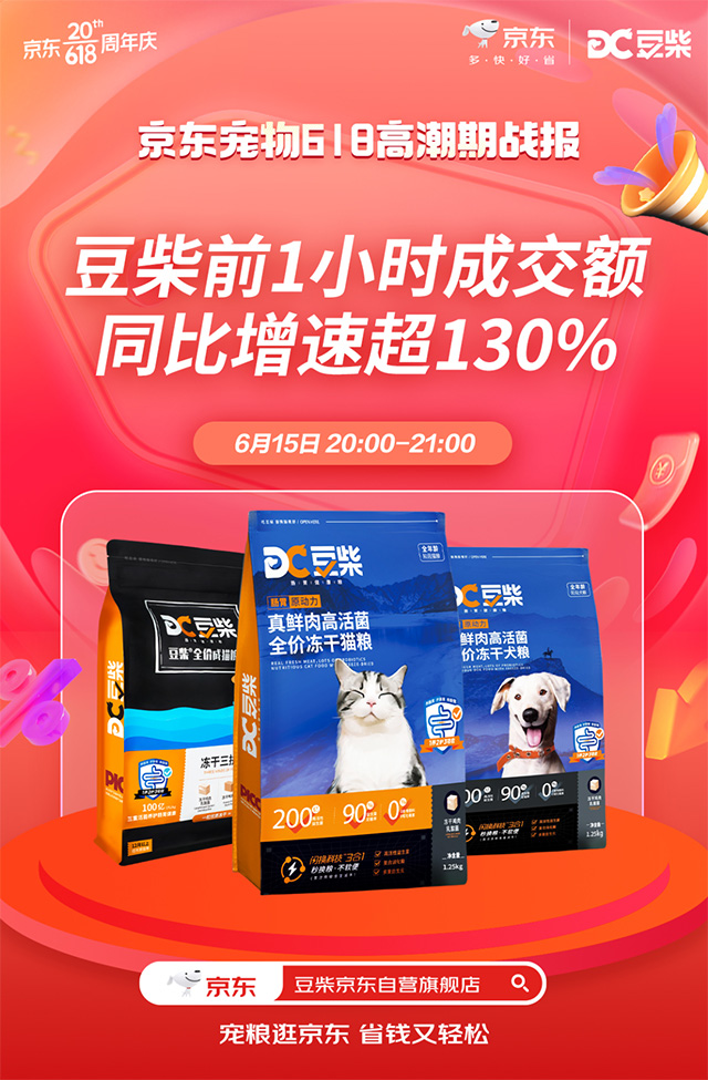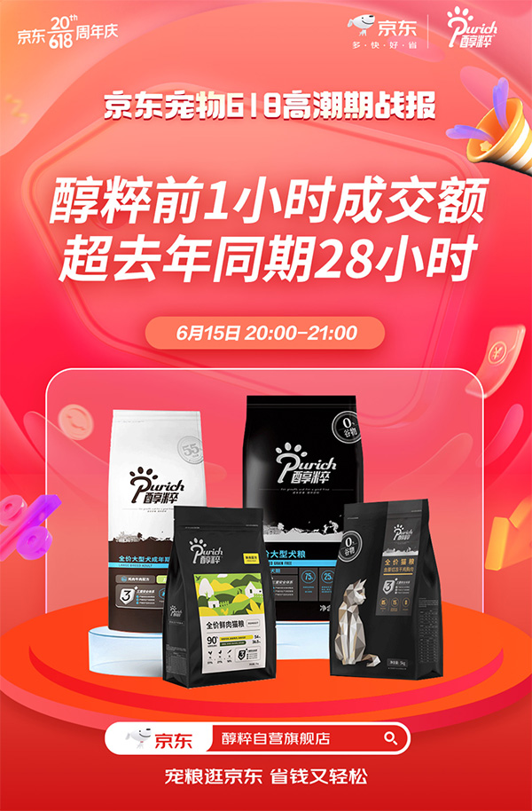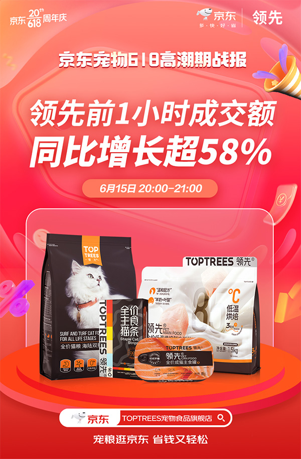 京东宠物也发布了618首小时战报,统计时间为6月15日20:00-6月15日21:00,战报具体如下: