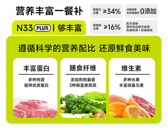 当您选择诚实一口N33 PLUS,您还获得了营养全面性的保证。这款犬粮通过了严格的质量检测和科学配比,确保了各类营养物质的协同效应。即便是在日常繁杂的工作生活中,您也可以轻松为爱犬提供健康的饮食,无需为营养不均或缺乏担忧。