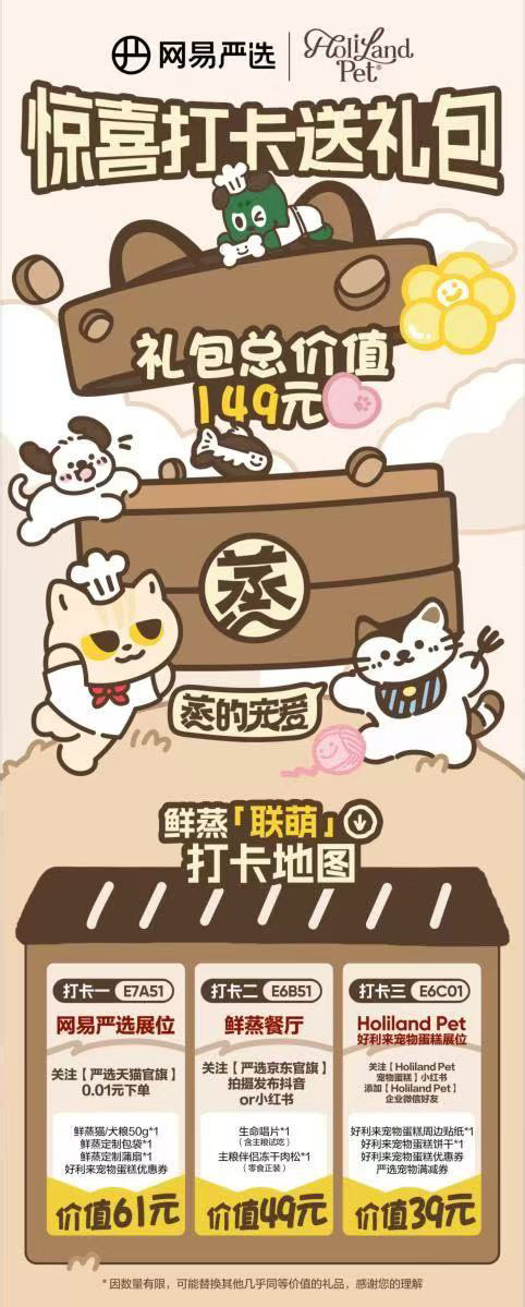 值得一提的是,此次亚宠展,网易严选与好利来宠物蛋糕联动推出诸多鲜蒸惊喜,在双方设置的鲜蒸餐厅等3个打卡点,用户可以领取丰厚打卡福利并参与惊喜鲜蒸试吃活动,数量有限,先到先得。网易严选与好利来宠物蛋糕的鲜蒸联“萌”,鲜蒸宠粮与宠物糕点相得益彰,为宠物提供了更多营养美味的饮食选择,成为人宠友好趣味标杆。