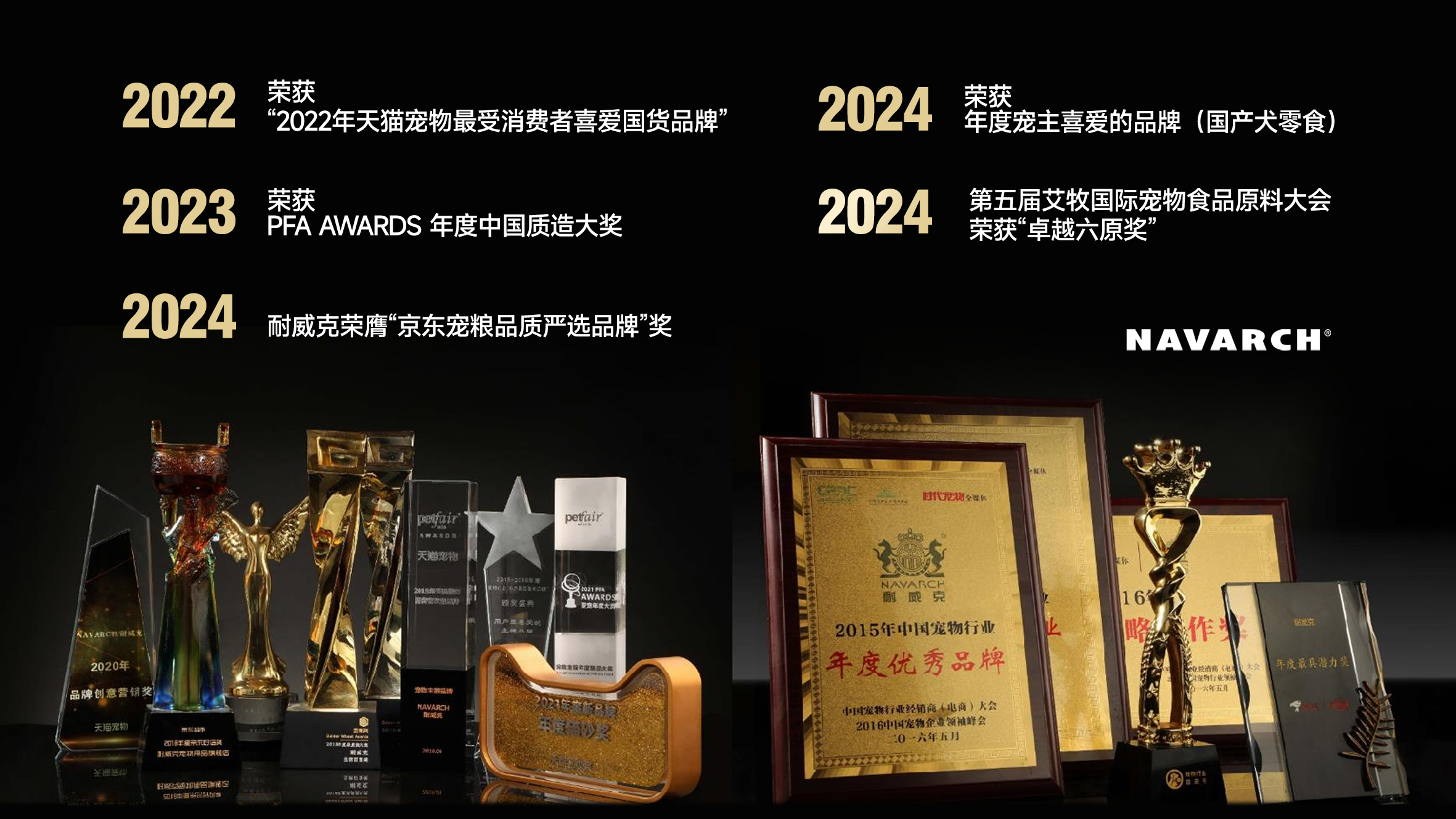 耐威克在市场上的表现同样令人瞩目。已服务超400万会员、2000万只宠物,并连续10年在双十一犬主粮销售中位列第一。2015年,耐威克获得中国宠物产业联盟“中国十大宠物粮品牌”称号;2016年,荣获“中国宠物行业最受宠物店欢迎品牌”和中国宠物行业年度标杆品牌。2023年,耐威克在PFA AWARDS颁奖中荣获“年度中国质造大奖”,其卓越的质量管理体系以及品牌建设和技术创新能力得到了业界肯定。
