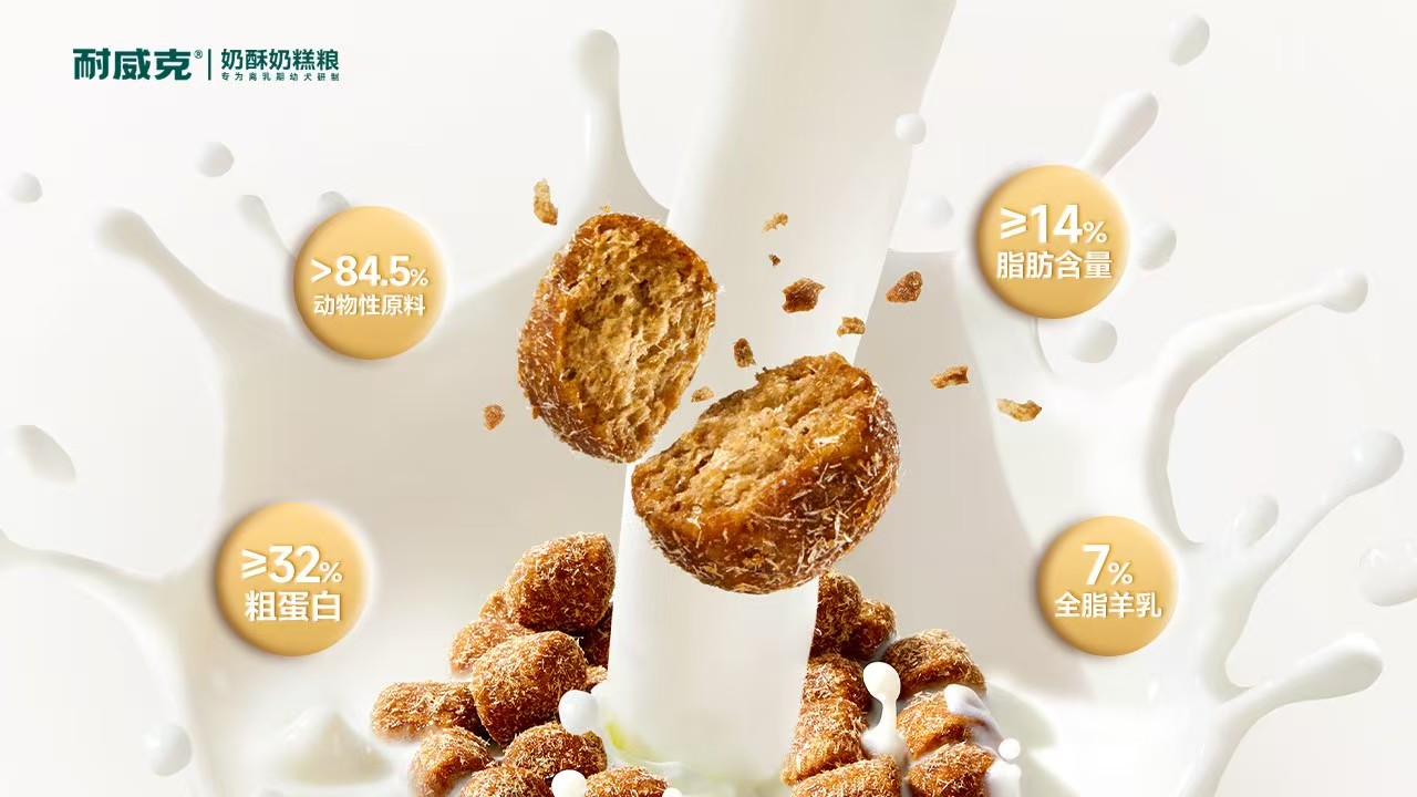 近日,耐威克宠粮届元老品牌正式推出其创新产品——「奶酥」离乳期幼犬全价奶糕粮。该产品通过独家3S NanoDirect™鲜肉微孔酥化科技与全脂生羊乳的科学搭配,首次实现了“酥化粮与羊乳”的工艺融合,为幼犬健康度过“免疫空白期”提供了解决方案,守护TA离开妈妈后最脆弱的108天。