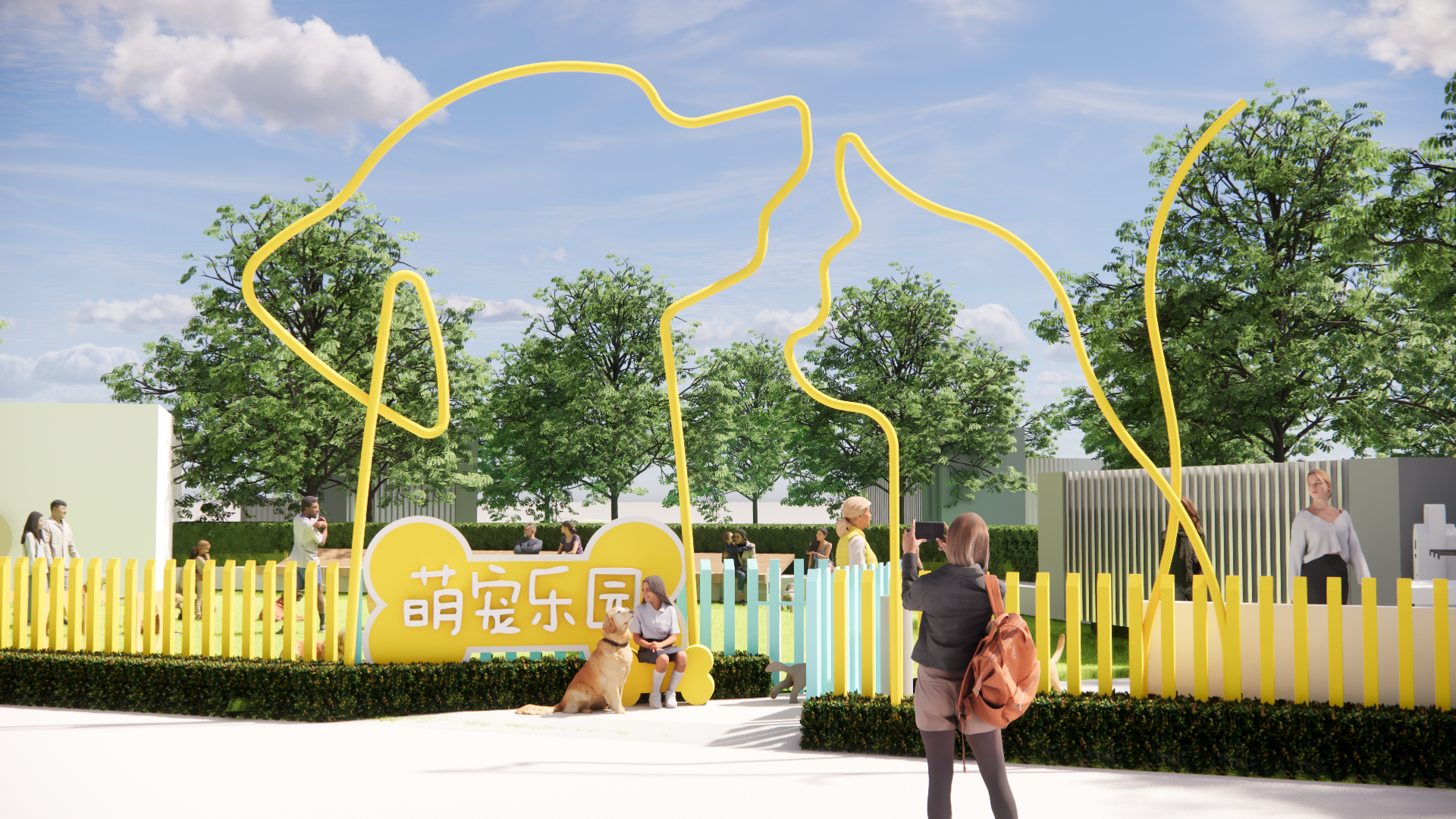 在硬件配置上,上海虹桥前湾印象城MEGA系统布局人宠落客区、萌宠乐园、人宠友好洗手间、人宠共乘电梯、宠物推车、宠物饮水点、牵绳处、便溺点等基础设施,并配套完善的软性服务,与已引入的宠物友好品牌形成有效协同。为深化“人宠友好”概念,项目注重平衡养宠人士与非养宠人群的不同需求,通过明确划分宠物活动区与非宠物活动区,设置缓冲空间与行为指引,营造和谐共处的公共环境。