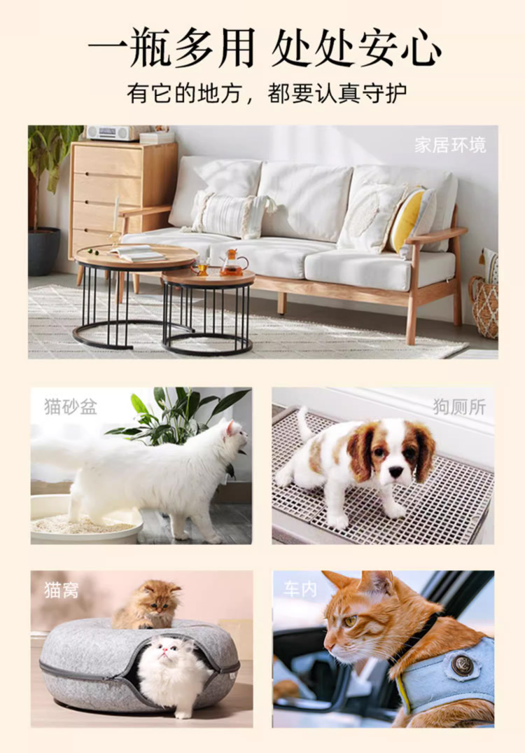 青柿除臭喷雾,青柿果植物精华,天然活性成分,温和植物配方,有机去臭;安心呵呵,猫狗通用。