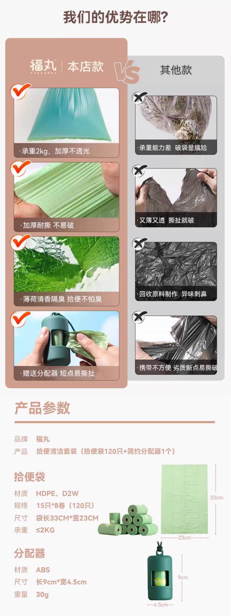 福丸宠物拾便清洁袋,环保降解,薄荷清香,轻盈便携。