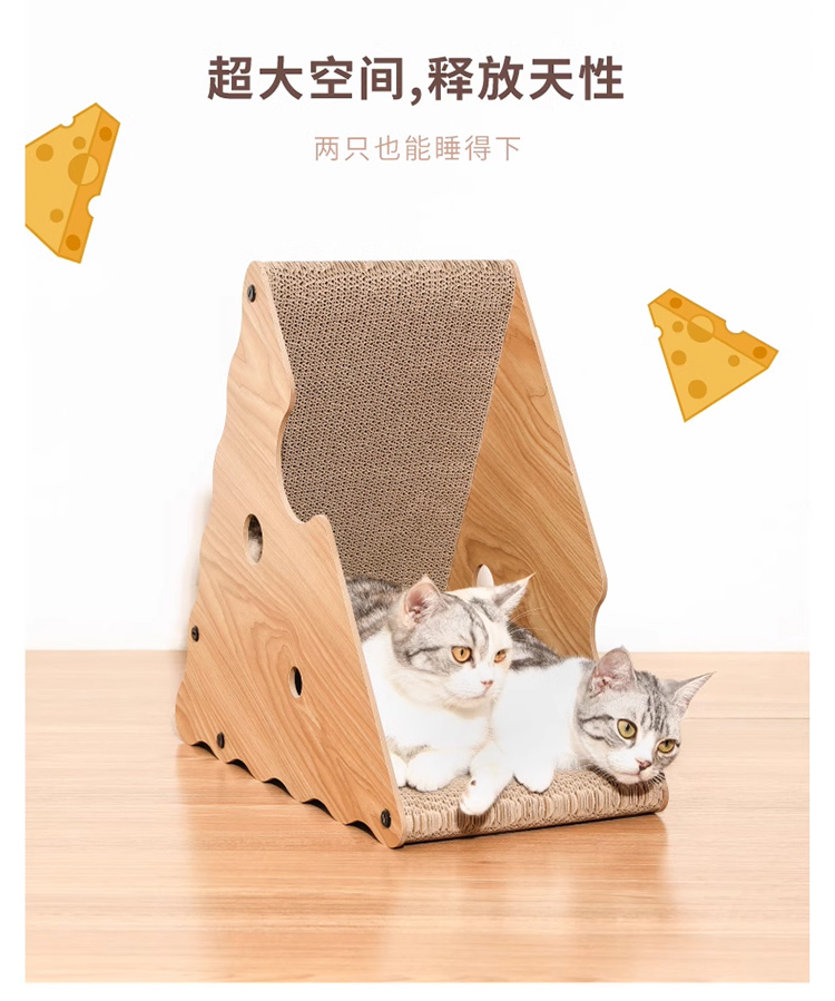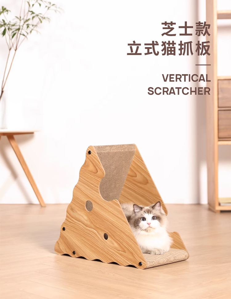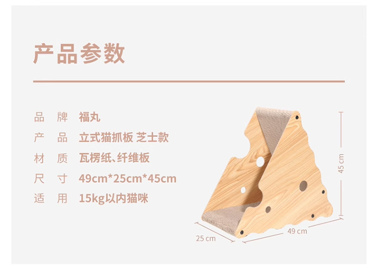 福丸芝士型立式猫抓板,平坦底面,玩睡合一,优质瓦楞,自然环保。