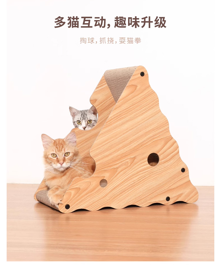 波浪曲面,流畅弧度,高处抓挠,满足拉伸。超大空间,释放天性,两只猫咪也能睡得下。