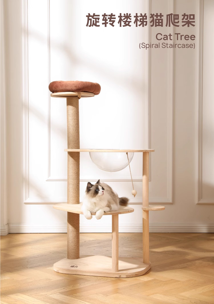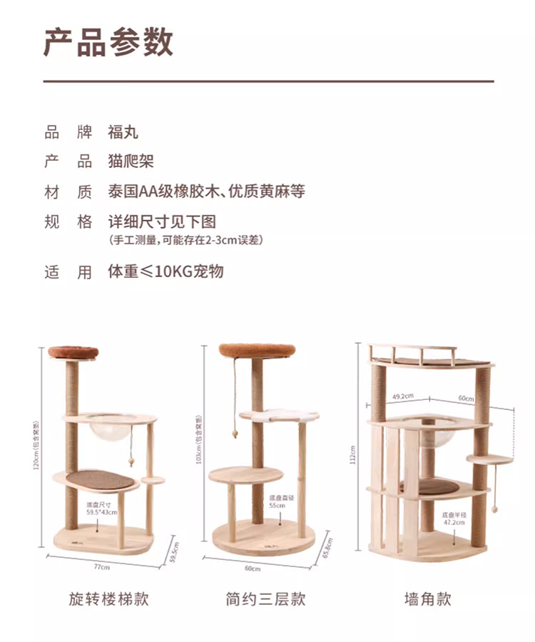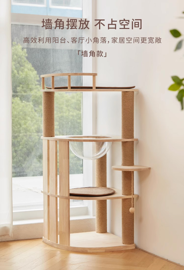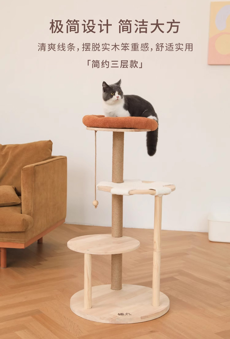福丸墙角款实木猫爬架,极简设计,简洁大方,清爽线条,舒适实用,墙角摆放,不占空间。