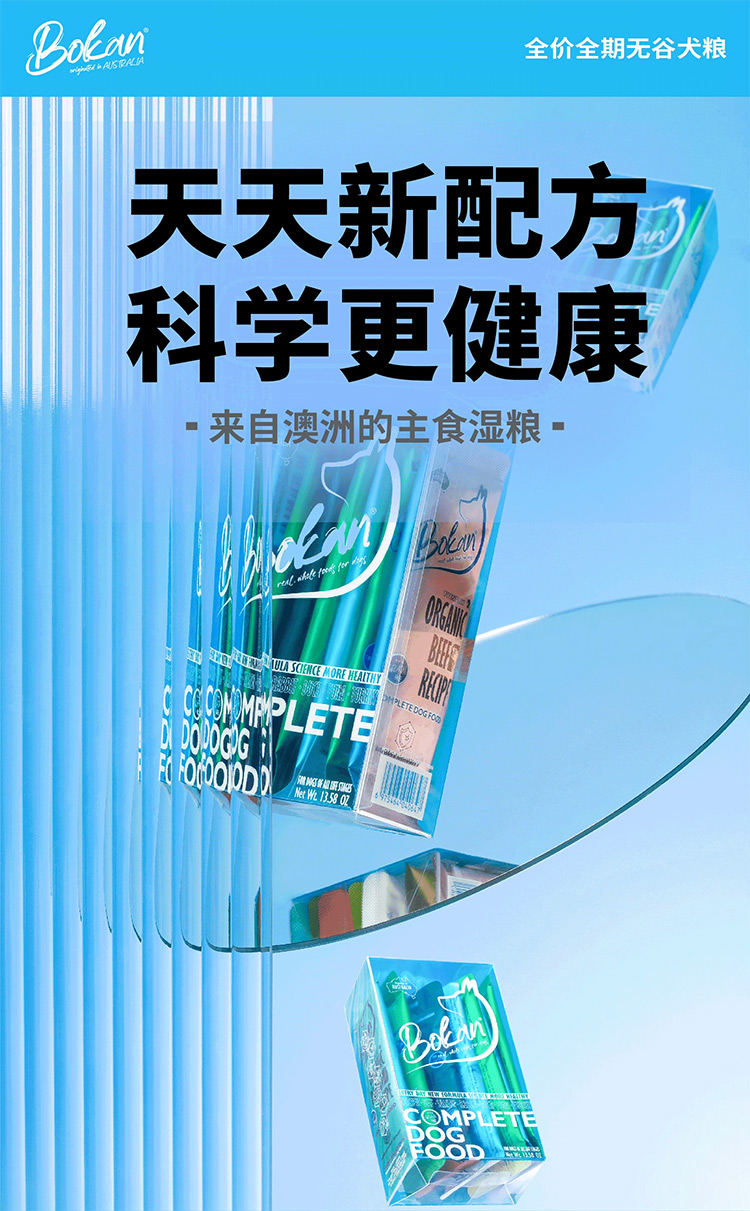 科学配方,甄选肉材,每天都是新配方,湿粮就选Bokan博刻,呵护狗狗每日健康。